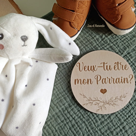 Carte annonce parrain marraine en bois personnalisée fleurie