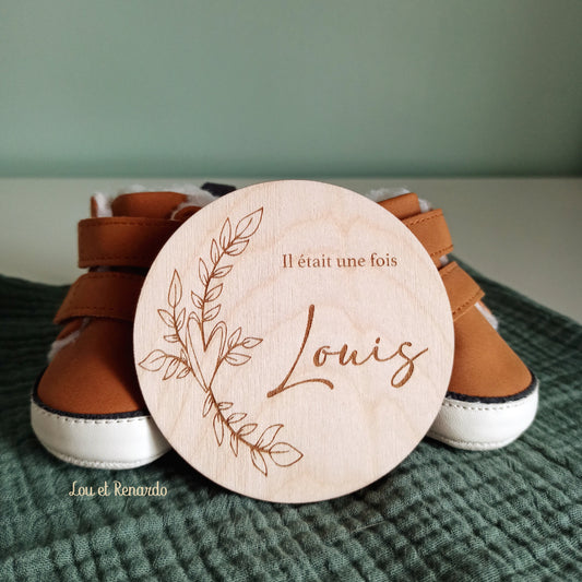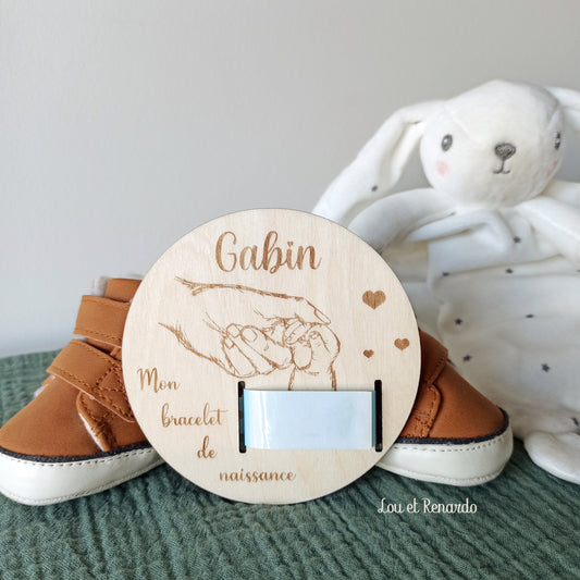 Carte bracelet de naissance en bois personnalisée