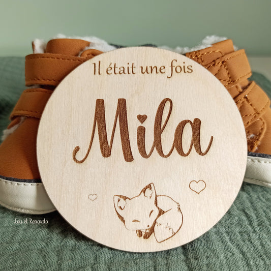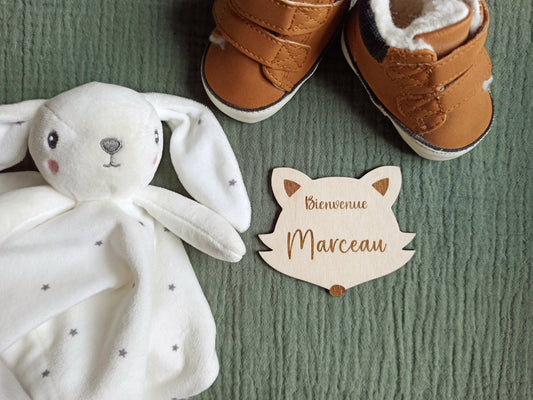 Carte étape naissance Bienvenue Renard en bois personnalisée