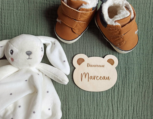 Carte étape naissance Bienvenue Ourson en bois personnalisée