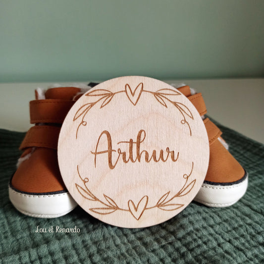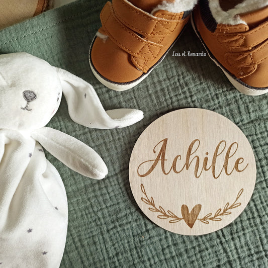 Carte bracelet de naissance en bois personnalisée