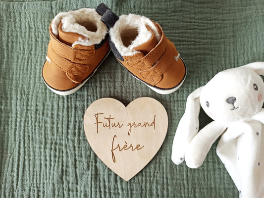 Carte annonce grossesse Coeur Future grande soeur ou frère en bois